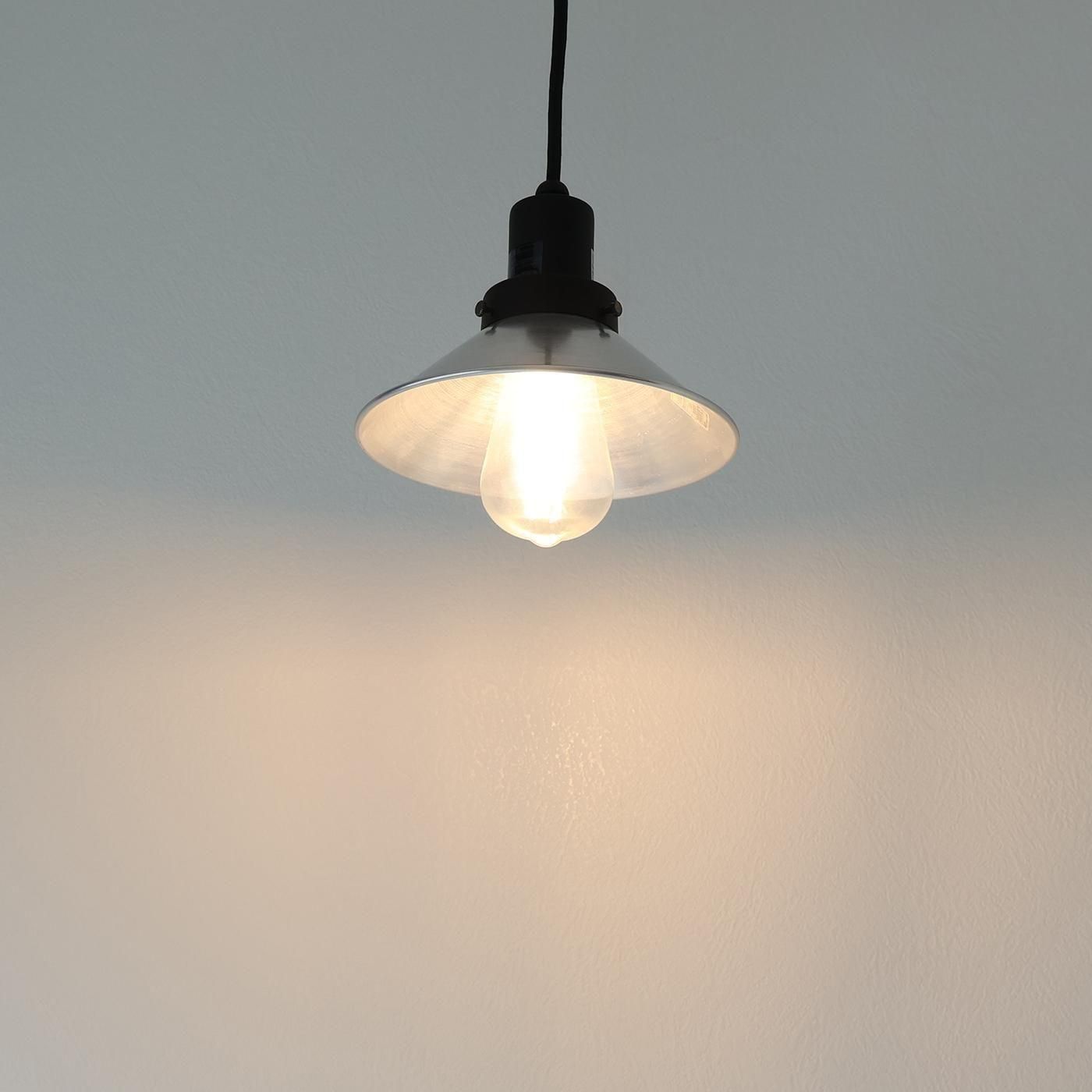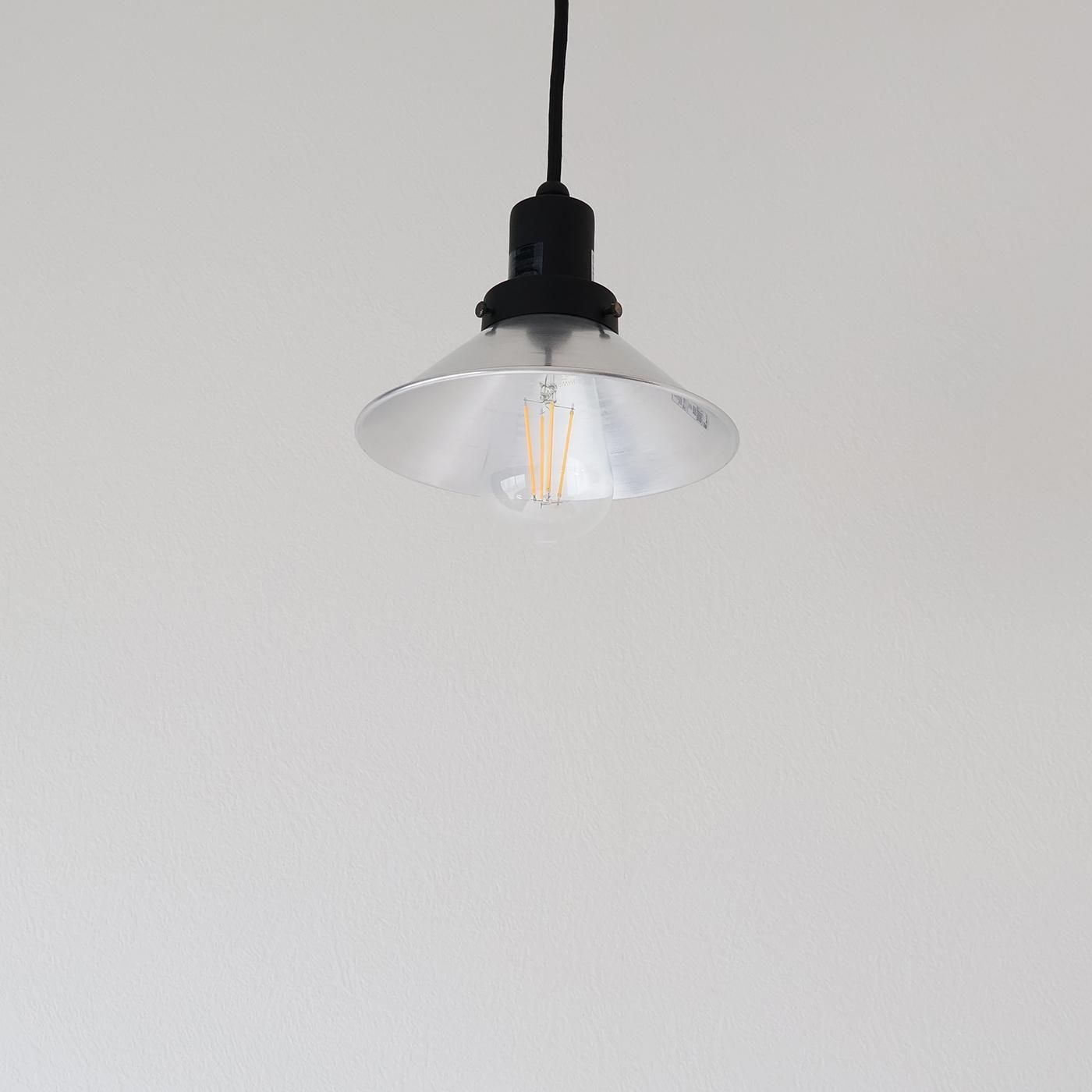 どこかレトロさを感じさせるデザインと現代的なデザインが融合したアルミシェード。たしかな存在感がありながらも、ぬくもりや懐かしさが感じられます。