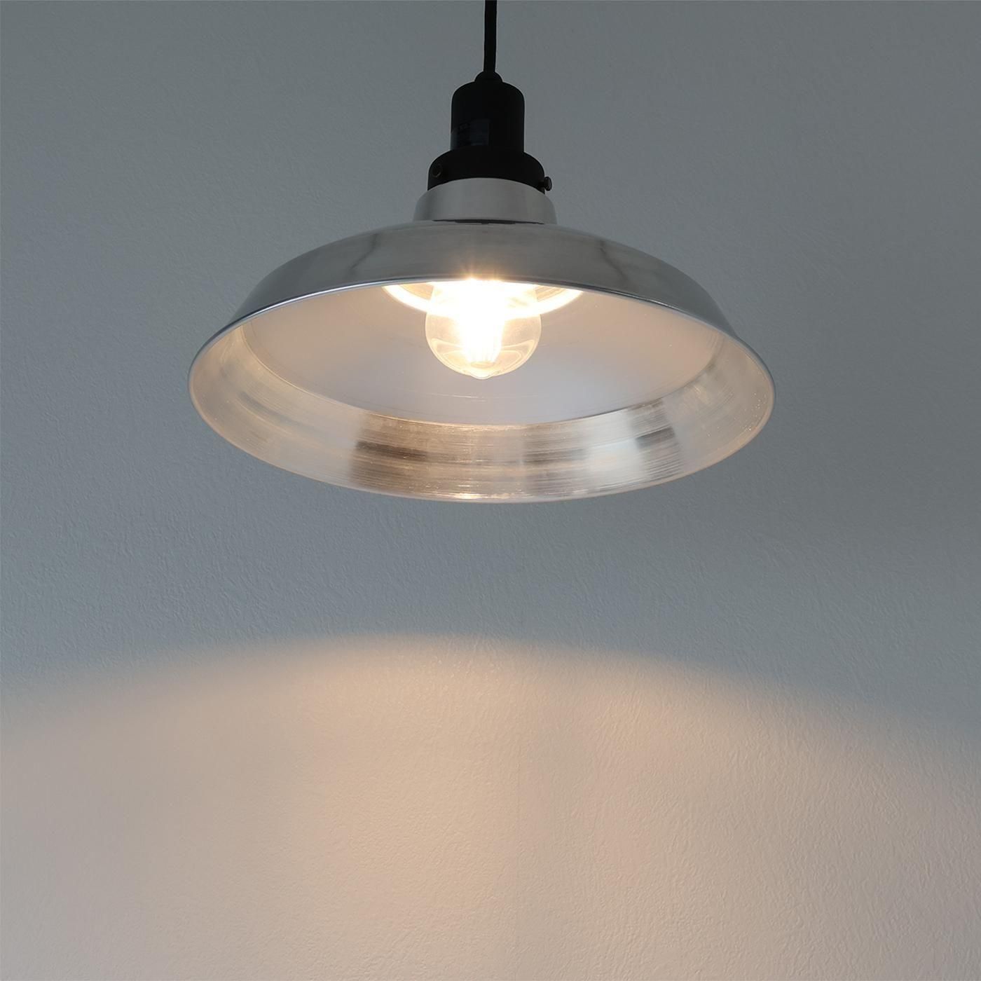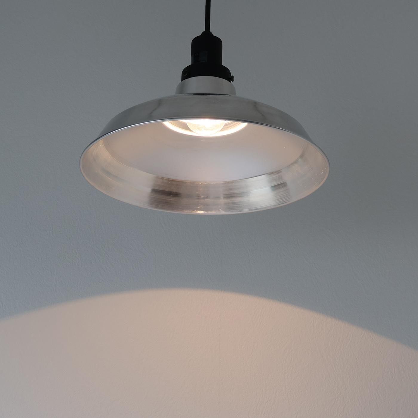 どこかレトロさを感じさせるデザインと現代的なデザインが融合したアルミシェード。たしかな存在感がありながらも、ぬくもりや懐かしさが感じられます。