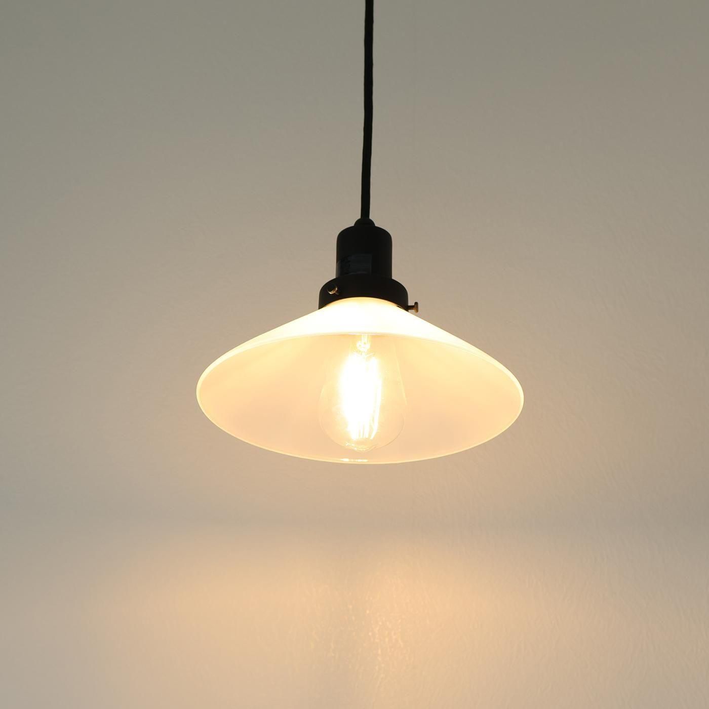 透明ガラスの表面をサンドブラスト加工した半透明のガラスシェードで、味わいのある質感で柔らかな光が広がります。