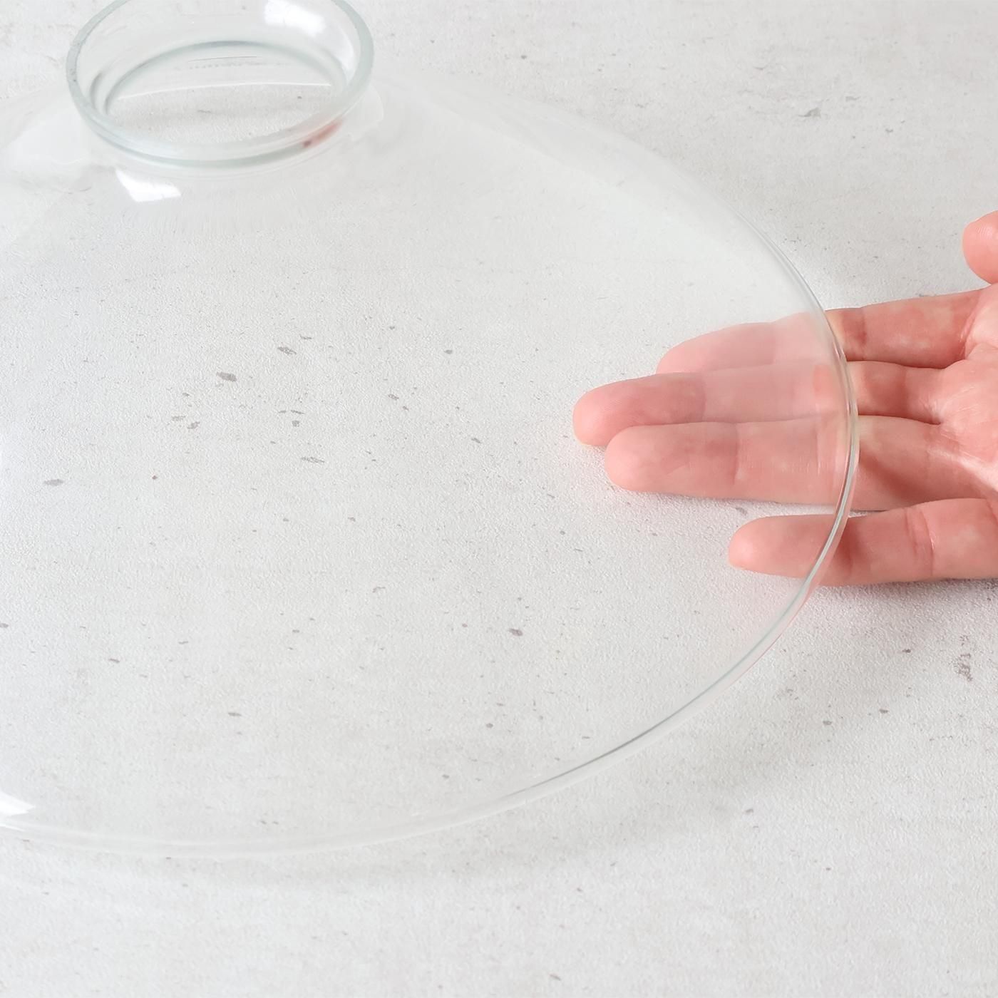 こちらのガラスシェードは、熟練の職人による手吹きガラスで作られています。そのため、気泡や厚みの微妙な違いなど、一つひとつに個性があり、機械で作られた製品にはない独特の風合いと暖かみを楽しめます。手作りだからこそ生まれる、やわらかな光とレトロで上質なデザインが魅力です。